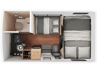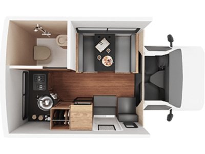 Our compact unit is a fully self-contained RV with a sleek aerodynamic design.